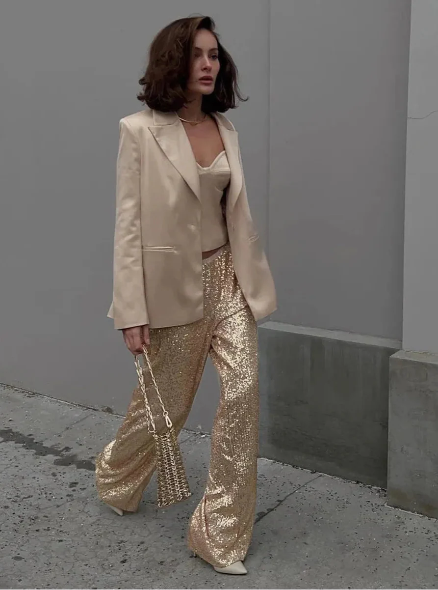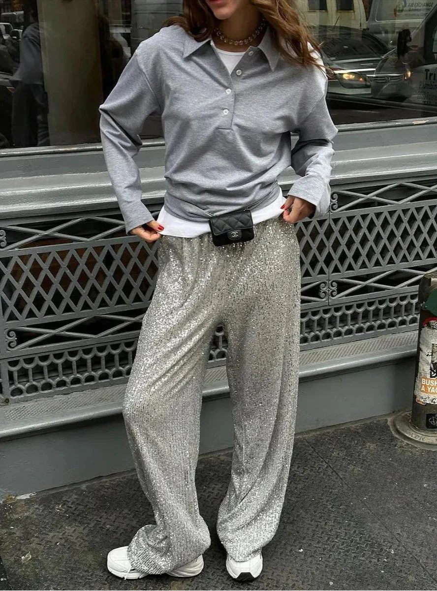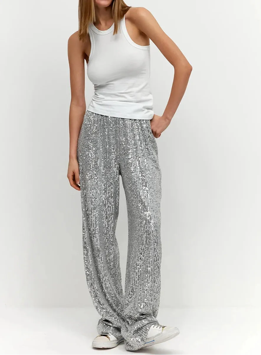 Paillettenhose – Glitzernd – Glitzer – Weite Hose – Damen-Paillettenho – Fashion Peak