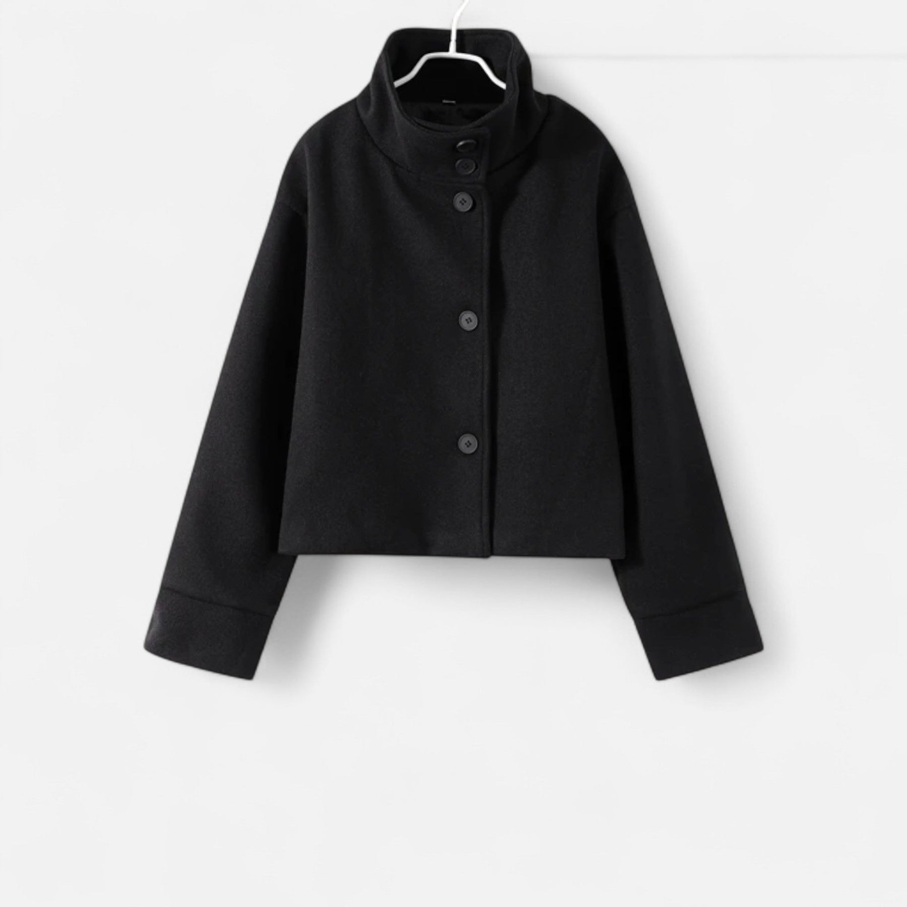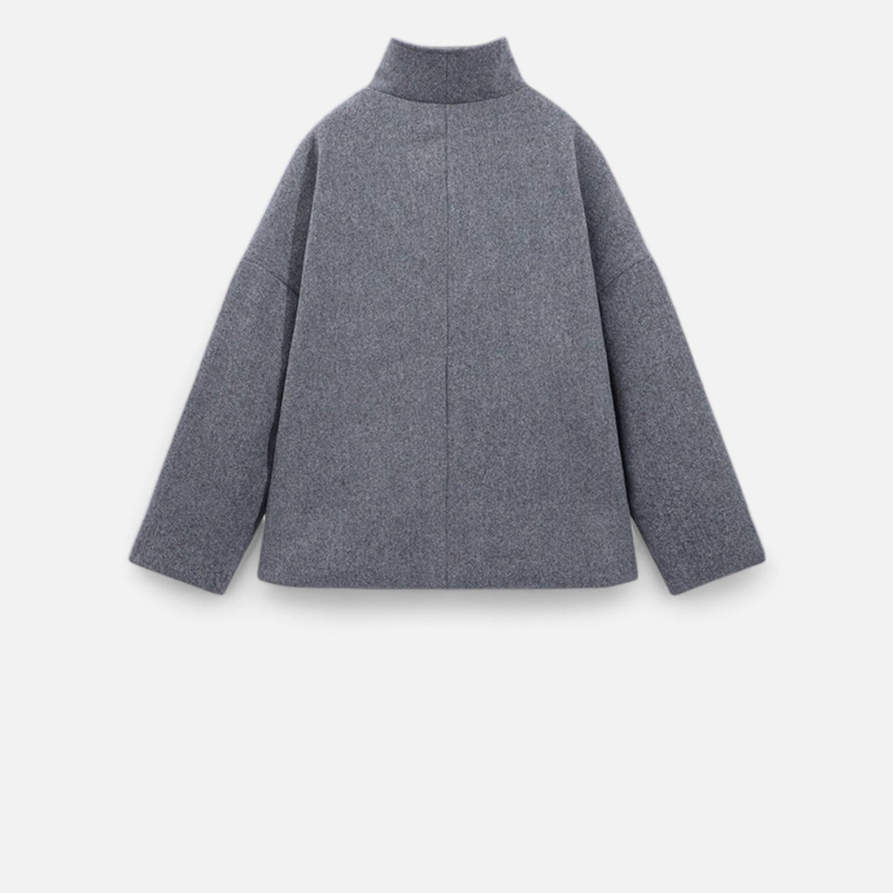 • Raffinierter hoher Kragen mit doppelter Knopfleiste