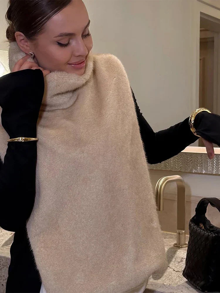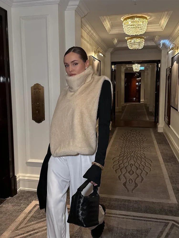 Kunstfellweste – Damen ärmelloser Rollkragenpullover mit Kunstfellwest – Fashion Peak
